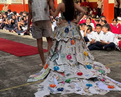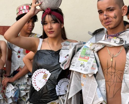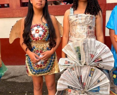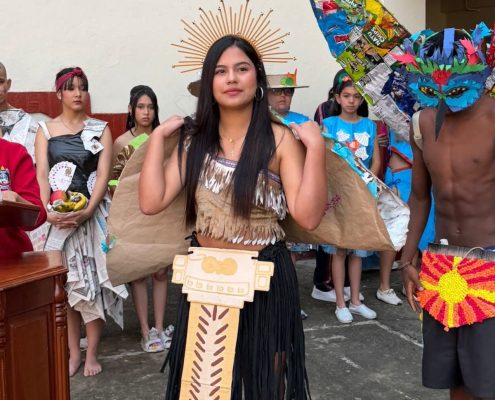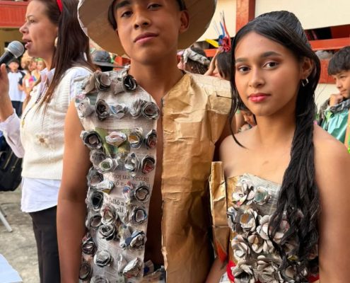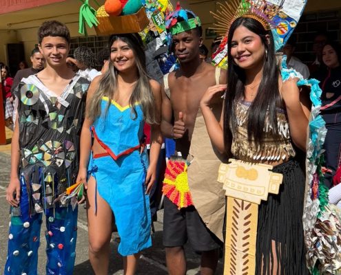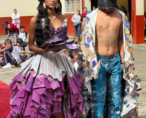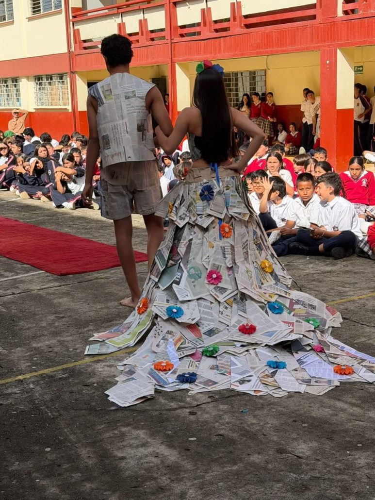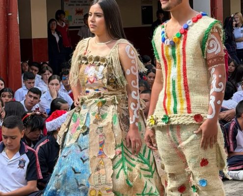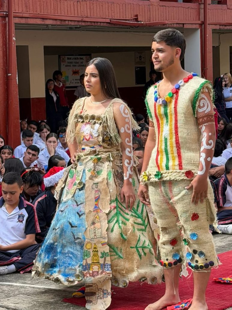 En la Escuela Normal Superior Sagrada Familia de Urrao, se recreó un desfile de trajes reciclados con la intencionalidad de conmemorar la Independencia de Cartagena. A través del uso e implementación de materiales ecológicos y amigables con el medio ambiente, los estudiantes proyectaron sus procesos de imaginación, creatividad y trabajo colaborativo en la elaboración y materialización de los trajes. Así, reforzamos el sentido de identidad, pertenencia y cultural, como también de estética, sensibilidad y legado social.